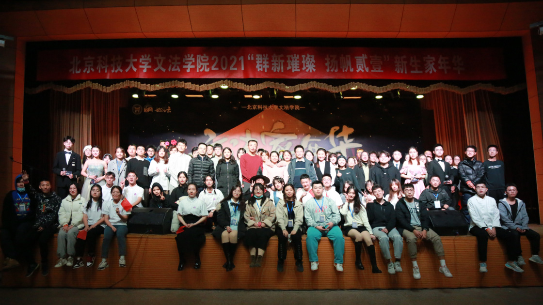 至此,北京科技大学小黄书 第九届文法家年华暨2021级新生迎新晚会圆满结束,领导嘉宾与全体演职人员合影留念。
