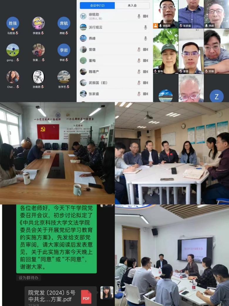 启动部署会结束后,各党支部积极响应、迅速行动,通过线上+线下相结合的方式向党支部党员传达有关开展党纪学习教育的事项,讨论并规划了党支部结合主题党日开展党纪学习教育活动的内容。