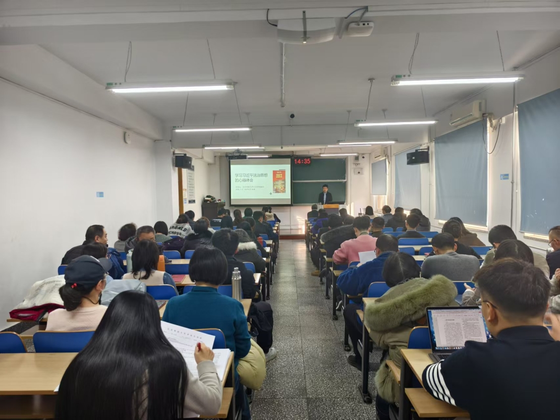 为提升学院全体教职工理论学习水平,增强知识储备、建强思想根基,2025年1月3日下午,学院特别邀请法律系教授李富成为全体教职工主讲以“习近平法治思想”为主题的专题讲座。讲座由学院党委副书记、副院长李虹主持。