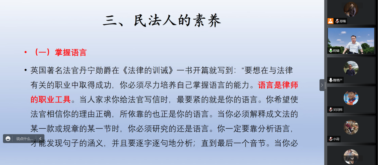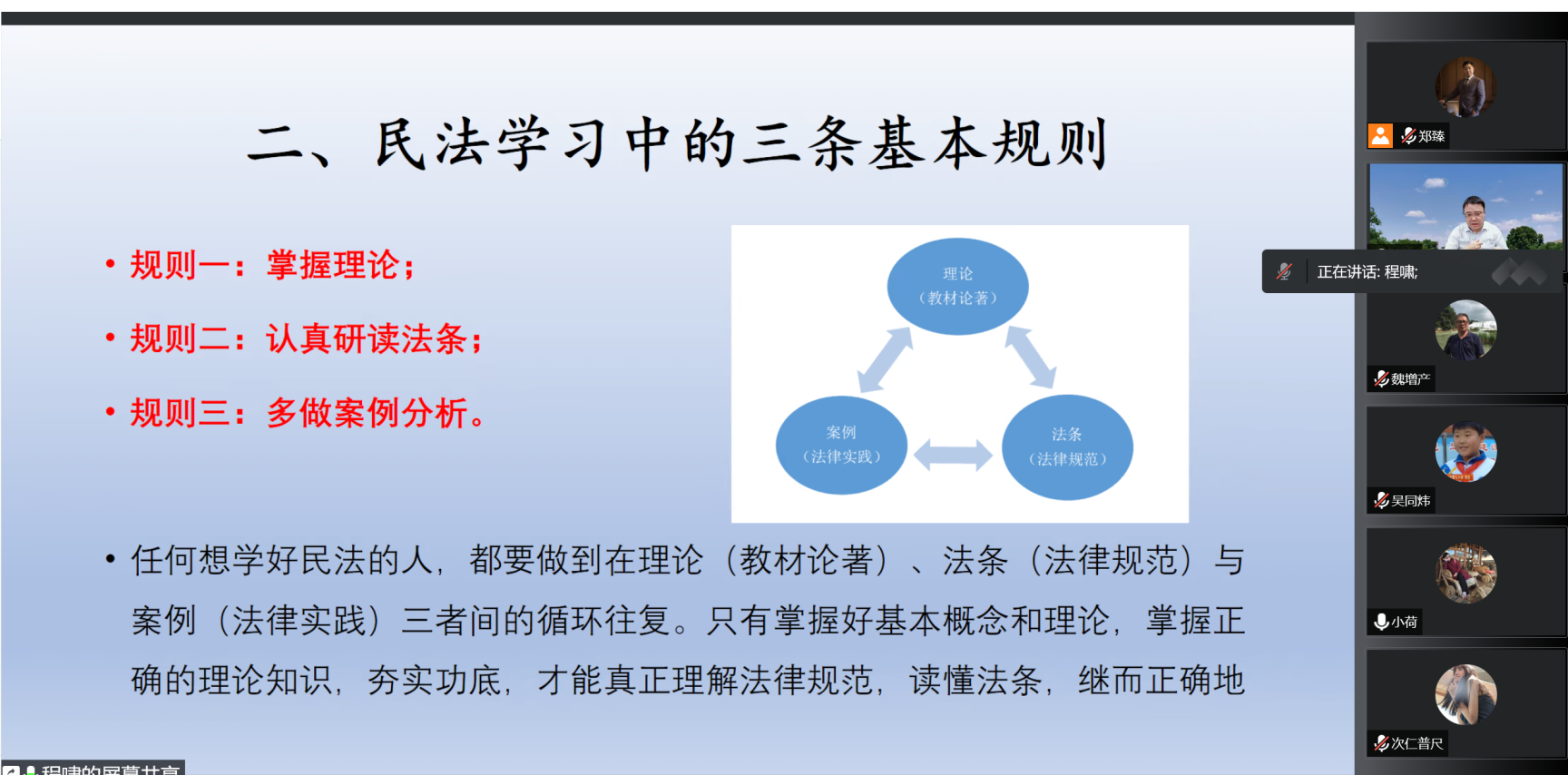 常务副院长魏增产副教授、法律系郑臻副教授等百余名师生参加,讲座由常务副院长魏增产副教授主持。应疫情防控政策要求,本次讲座通过线上形式开展。