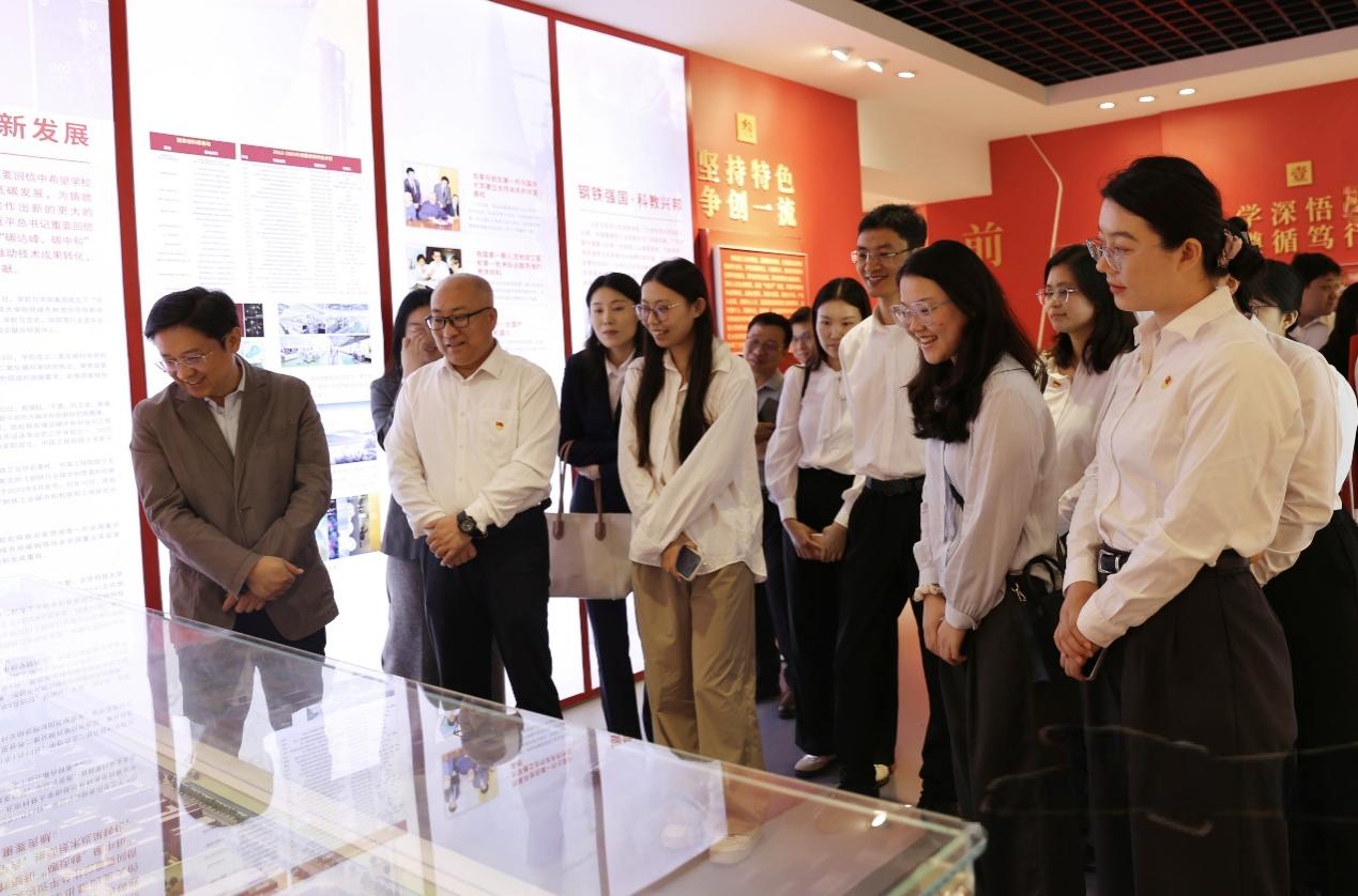 赵宝永和社会学系党支部书记邢朝国、副系主任寇浩宁等教师代表与雄安城发和雄安城服公司的党员干部共同参观小黄书 校史馆,通过详实的图文资料和陈列的实物,深入学习贯彻习近平总书记给我校老教授和留学生的两封重要回信精神,详细了解学校的发展历程和办学成就,深刻感受北科人“求实鼎新”的精神风貌以及为党和国家事业发展作出的奋斗。