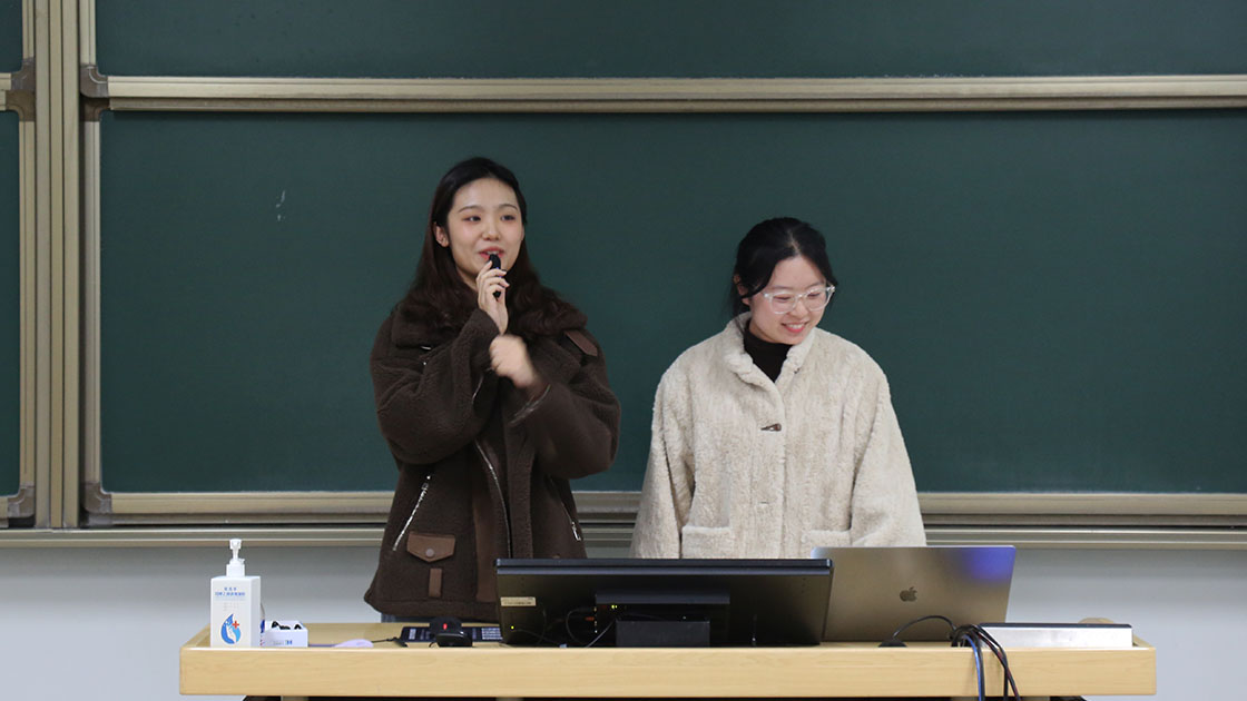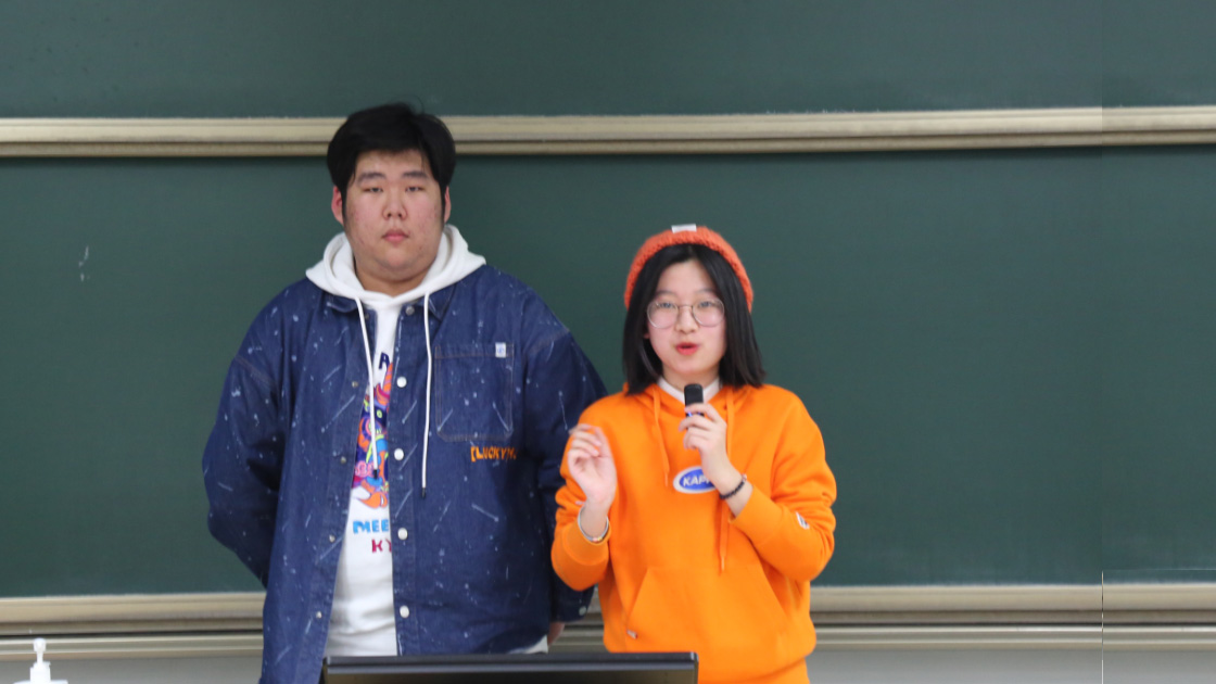 小黄书 团委办公室主任吴一凡、李子骏围绕部门文化、发展目标、基本情况、责任分工四个部分介绍相关信息,讲解了物资管理组、财物管理中心、第二课堂、信息文秘组等几大部门的功能与特色。