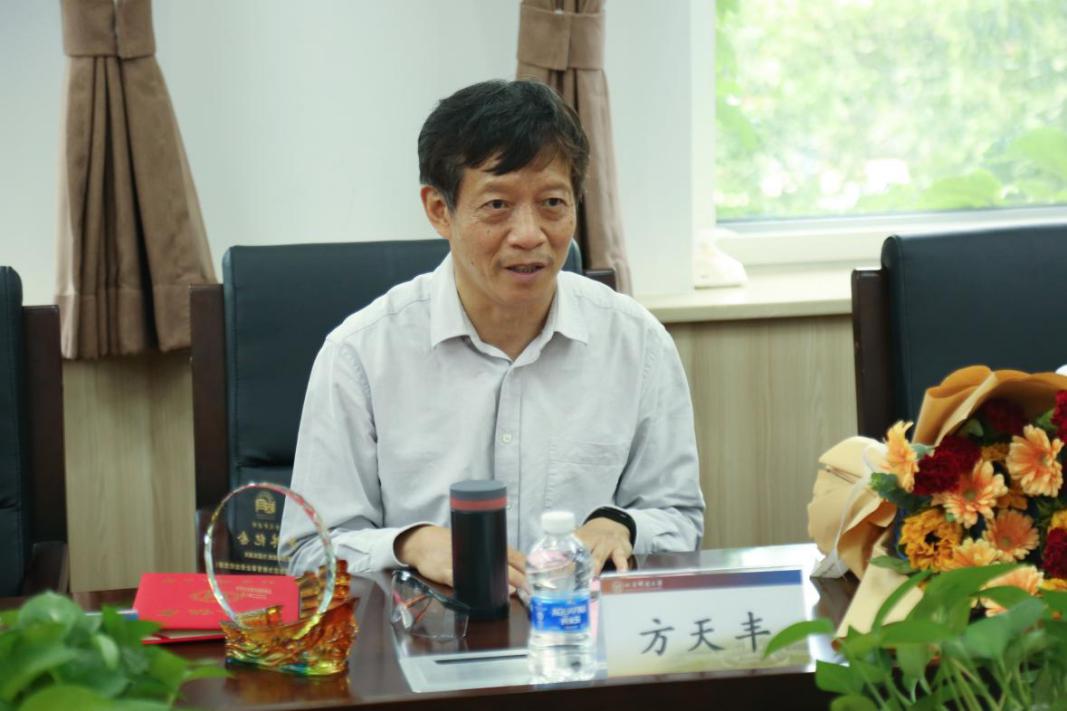 学院党委书记史立伟、院长魏增产代表学院班子向方天丰老师赠送了荣休牌、纪念品、荣休证书和鲜花。荣休纪念牌基座为琉璃帆船造型,祝愿方老师退休生活一帆风顺。