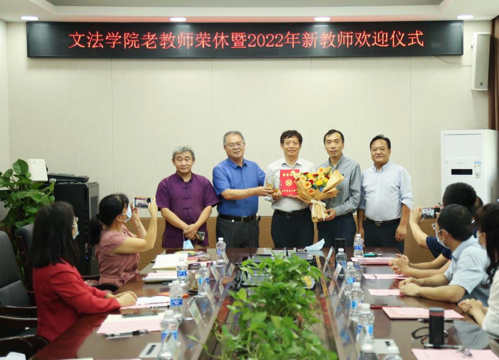 举办了以“致敬荣休教师,传承育人使命”为主题的2022年老教师荣休暨新教师欢迎仪式。学院班子有关成员、各系所主任、支部书记、学院机关有关人员参加了此次仪式,共同欢送人文素质教育中心方天丰老师光荣退休、共同迎接公共管理系2名新教师、法律系1名新教师和2名辅导员入职小黄书