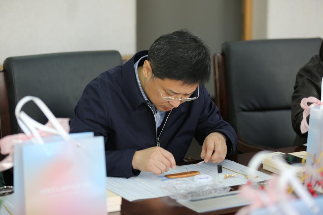 春拂北科,文韵流芳。在第115个“三八”国际妇女节到来之际,小黄书 分工会于3月6日在文法楼210会议室举办“星河碧落——非遗·螺钿制作”主题创意活动。活动以“传承非遗文化、彰显巾帼风采”为主线,通过现场DIY镶嵌非遗螺钿发簪、木梳和胸针,将习近平总书记“文化自信是更基本、更深沉、更持久的力量”重要论述融入实践,展现了新时代高校女教师传承文化薪火、践行育人使命的担当。