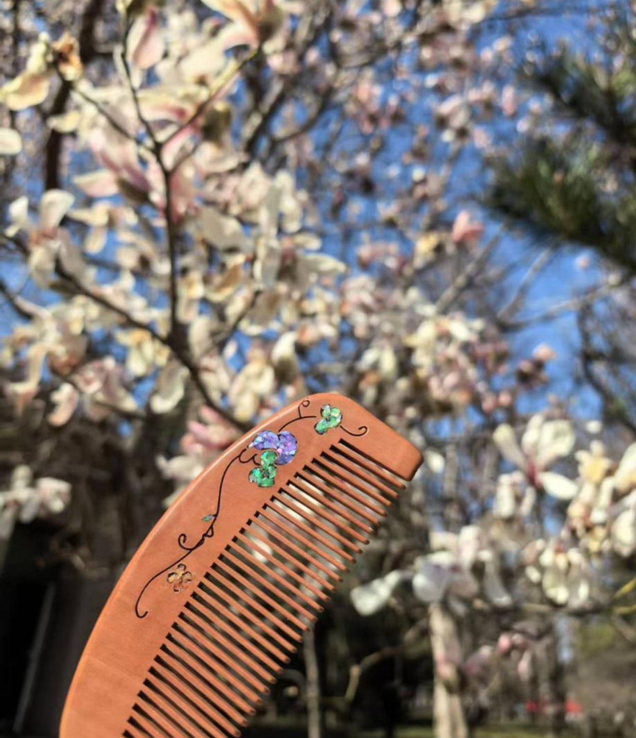 活动中,学院教职工手持贝片,通过精心打磨和巧妙镶嵌,制作出寓意“芳华永驻”的发簪、“梳写春秋”的木梳以及“胸有锦绣”的胸针。现场气氛轻松愉悦,充分展现了学院教职工“宽容和谐,研究学习”的精神风貌。参与活动的女教师纷纷表示,闪耀的螺钿与金属发簪的坚韧相映成趣,正如北科大“求实鼎新”的校训,传统文化与现代科技的融合让我们更深刻地理解了非遗文化传承的意义,生动践行了习近平总书记“让中华文化展现出永久魅力和时代风采”的号召。