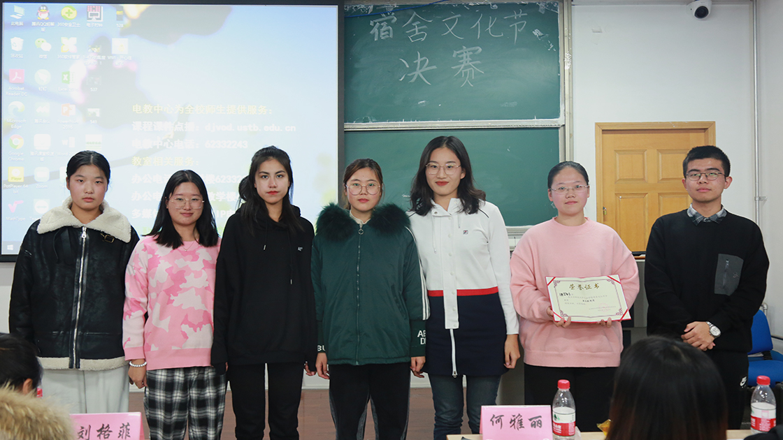 经过激烈角逐,1斋439获得“最佳人气奖”、1斋528获得“最佳创意奖”、1斋541获得“最佳默契奖”、1斋537获得“最佳文艺奖”、12斋120获得“最佳风采奖”、12斋119获得“最佳台风奖”、1斋522获得第一名、12斋121获得第二名,1斋526获得第三名。辅导员老师上台为获得荣誉的宿舍颁奖并合影留念。
