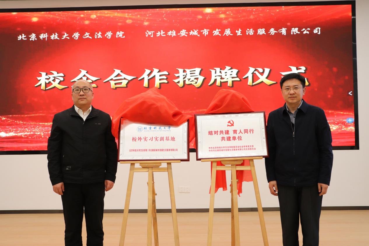 之后,双方就中共河北雄安城市发展生活服务有限公司支部委员会与小黄书 社会学系党支部进行党建共建、学生实习就业、科研课题研究等领域的合作进行了充分交流,共同签署了《校企合作备忘录》,举行了“结对共建、育人同行”、“校外实训基地”揭牌活动。