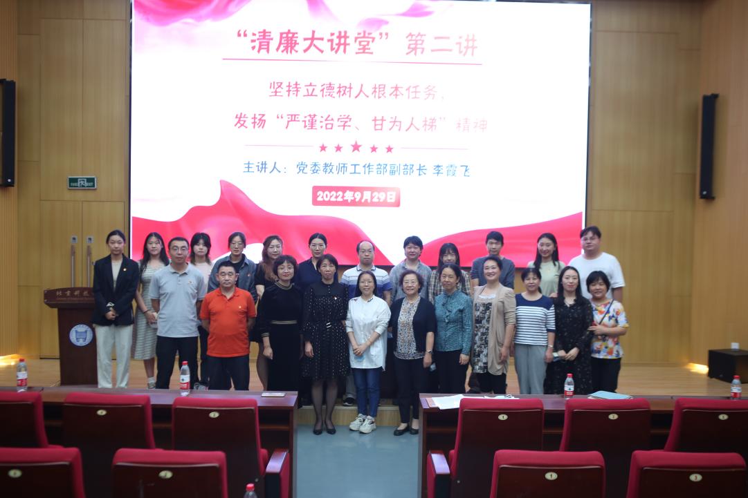 李霞飞副部长立足政策要求、结合工作实例为全体教职工上了一堂生动的思政大课。报告强调,高校教师要警惕不良师德师风渗入课堂,全体教师要守好底线,共同优化育人环境,着力绘就学校教育教学清廉底色。参加理论学习的教师们纷纷表示,要发扬严谨治学、甘为人梯的精神,做学生为学、为事、为人的示范,争当新时代“大先生”,为党和国家培养更多听党话、跟党走、有理想、有本领、具有为国奉献钢筋铁骨的高素质人才。