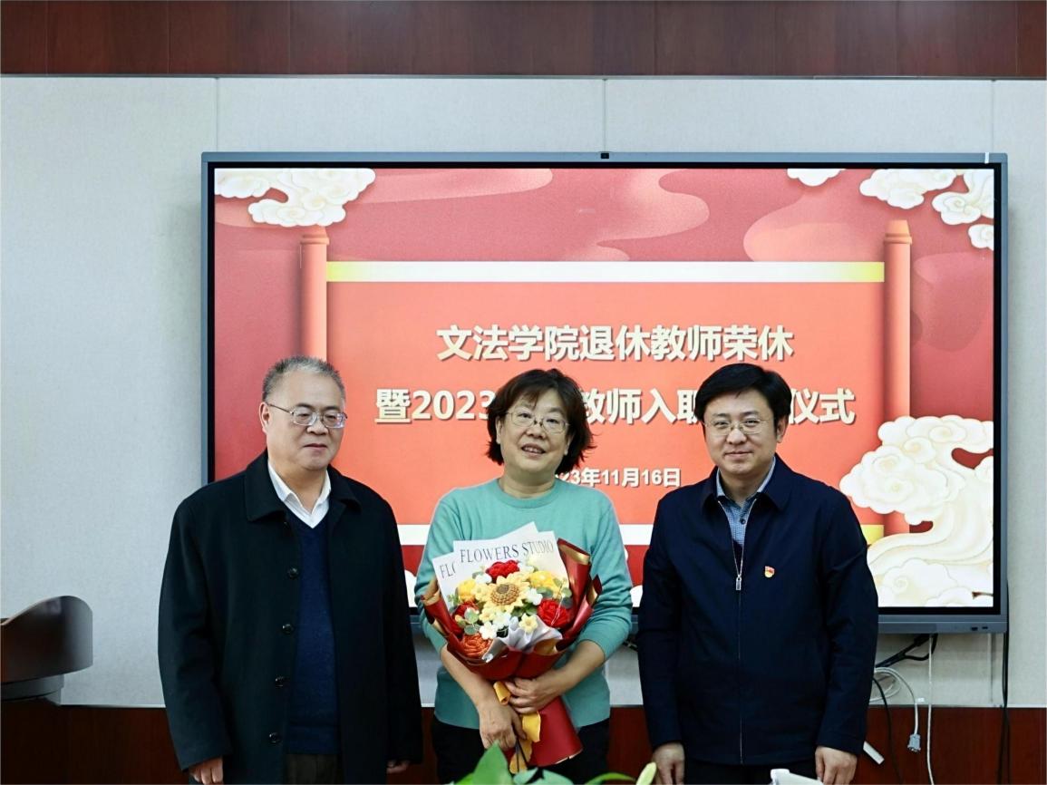 于2023年11月17日,以“感恩奉献,致敬芳华”为主题,举办2023年退休教师荣休暨新教师欢迎仪式。学院领导班子成员、各系所主任、支部书记、工会组长及学院机关有关人员参加仪式,向社会学系荣休教师刘向英致以真挚地感谢与祝福,同时热烈欢迎公共管理系、法律系、社会学系各1名新教师、2名辅导员和1名实验教学新教师入职小黄书