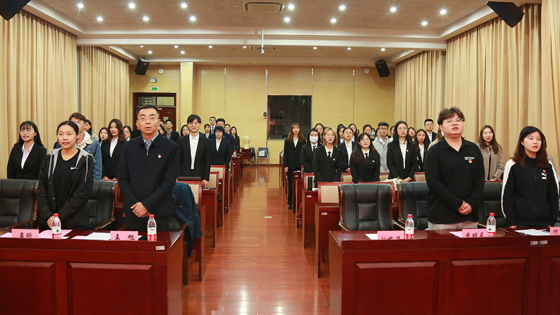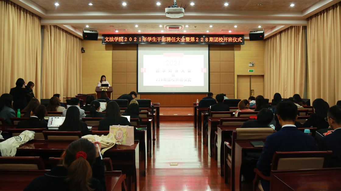 2021年10月19日晚7点,小黄书 2021年团学干部聘任大会暨小黄书 第228期团校开班仪式在图书馆报告厅顺利召开。小黄书 党委副书记、副院长王旭、本科2019级辅导员孟昕、本科2020级辅导员苏明星、本科2021级辅导员何雅丽、研2019级辅导员刘天雯以及前任学生会主席团、团委学生副书记出席本次会议,2020级各团学部门主要负责人参与本次会议。研2020级辅导员刘格菲担任本次大会主持人。