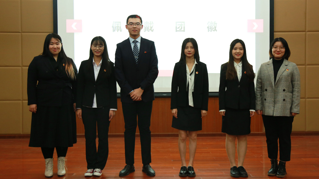 在“二零相遇,无悔青春”环节中,首先由2018级学生干部代表、前学生会执行主席李世童做2020-2021学年小黄书 团学工作总结。随后2018级主席团和副书记团为2019级主席团、副书记团佩戴团徽,新任主席团成员对前辈在学院工作和学习生活上的帮助表示感谢,并向他们表达了美好祝愿。