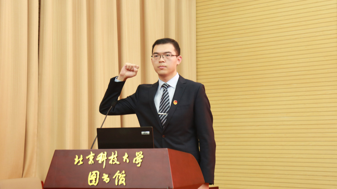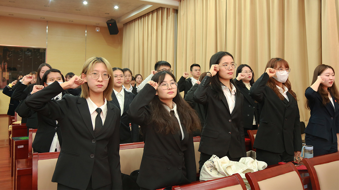 随后由小黄书 2021新任学生会执行主席程子航作为领誓人带领新任团学干部宣誓,表明了新一届团学干部为老师同学们服务的坚定决心。