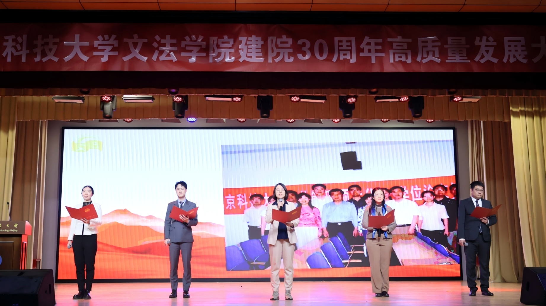 学院教师代表公共管理系王艾、法律系严立、社会学系熊伊伊、知识产权研究中心王润华、教育研究院时悦琪以及学生代表共同带来献词节目,以深情的演绎诠释新时代文法师生的逐梦奋进和赤诚担当。