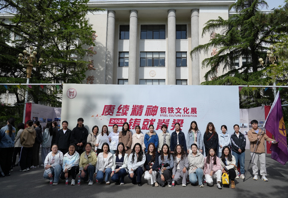 8时45分,同学们准时在文法楼下集合,整队前往图书馆东侧广场。在这里,同学们在讲解员的带领下有序参观钢铁文化展。一件件展品、一段段文字,生动展现了钢铁工业的发展历程,讲述了我校与钢铁之间的深厚渊源。在现场,“手撕钢”与“蚕丝钢”两个互动项目成为亮点。同学们亲手尝试“手撕钢”,感受钢材在手中被分开的奇妙体验;近距离观察触摸“蚕丝钢”,惊叹于其如丝线般纤细柔软却蕴含强大性能的特质。