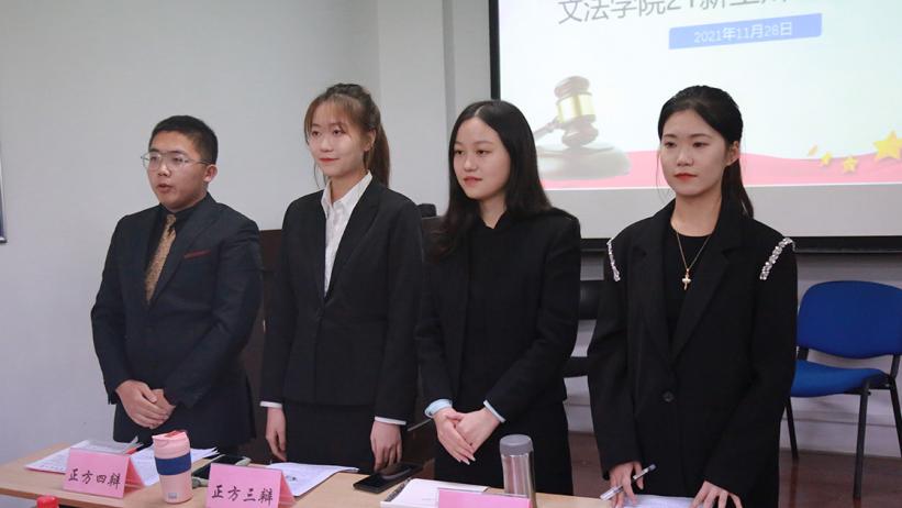2021年11月29日晚7:00,小黄书 2021级新生辩论赛决赛在文法楼305教室顺利举办。小黄书 辅导员刘格菲、何雅丽、齐勃宇出席本次活动,立言辩论队2019级队长、数理院队2019级队长杨明哲,立言辩论队2018副队长、文法院队2018级队长曹可儿,立言辩论队前助理教练、资深辩手关晴天担任此次比赛评委。本场比赛的辩题是“机遇是/不是成功的关键”,由社科2102班与社科2103班两支队伍就这一题目展开辩论。