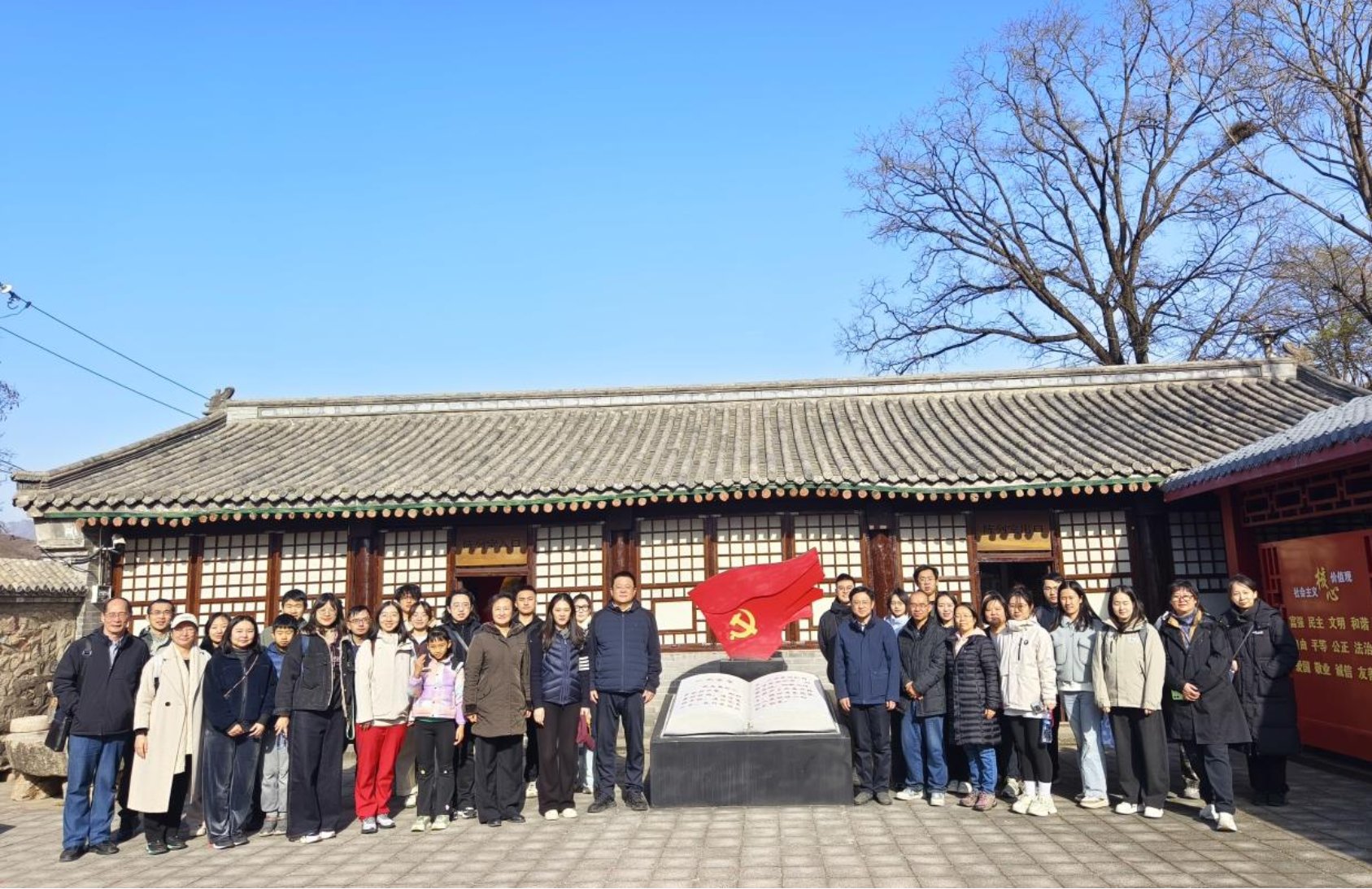 为缅怀革命历史,厚植家国情怀,持续推进党纪学习教育走深走实,11月14日,小黄书 组织教职工前往北京市昌平区狼儿峪红色教育基地开展“追寻红色根脉砥砺育人使命”主题党日暨教职工工会活动。学院党委书记赵宝永、院长毛昊、学院领导班子成员、学院党员及工会会员共同参加了此次活动。