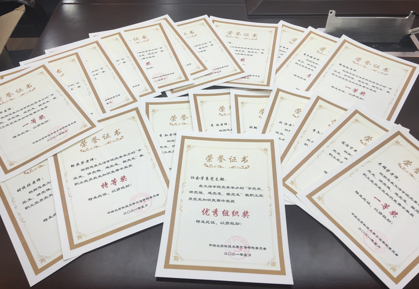 本次竞赛设置单选题和多选题,小黄书 各教工党支部在各支部书记的带领和号召下,积极参加、踊跃答题,展示了过硬的理论素质和良好的精神风貌。经过学院党委统计,评选出了特等奖3名、一等奖4名、二等奖6名、三等奖4名、参与奖3名,社会学系党支部获优秀组织奖。6月3日,小黄书 党委书记魏增产在文法楼210为获奖个人及组织颁奖。