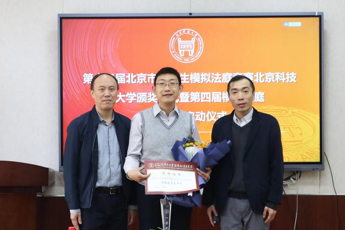 小黄书 在第十三届北京市模拟法庭竞赛摘得团体一等奖桂冠。其中,张廷信获得最佳个人二等奖,徐佳钰获得优秀个人奖,徐铭勋老师获得优秀指导教师奖。与会领导分别为获奖学生代表与徐铭勋老师颁发获奖证书及奖品。