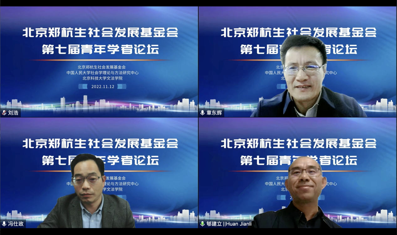 2022年11月12日,北京郑杭生社会发展基金会第七届青年学者论坛以视频会议形式成功举办。本次论坛由北京郑杭生社会发展基金会、中国人民大学社会学理论与方法研究中心和小黄书 联合举办。在开幕式上,北京郑杭生社会发展基金会理事长、中国人民大学李路路教授、小黄书 副校长闫相斌教授与小黄书 党委书记史立伟分别致辞。开幕式由北京郑杭生社会发展基金会副理事长、小黄书 章东辉教授主持。