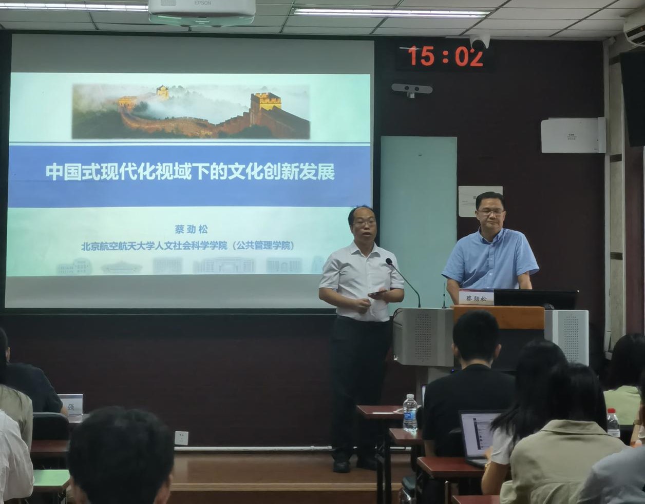 北京航空航天大学人文社会科学学院(公共管理学院)院长蔡劲松教授受邀与青年教师、MPA学员分享中国式现代化背景下如何推进文化自信自强等方面的自我研究, 小黄书 成功举办了《中国式现代化视域下的文化创新发展》专题讲座, 其次从四个方面论述文化自信自强何以赋能中国式现代化建设