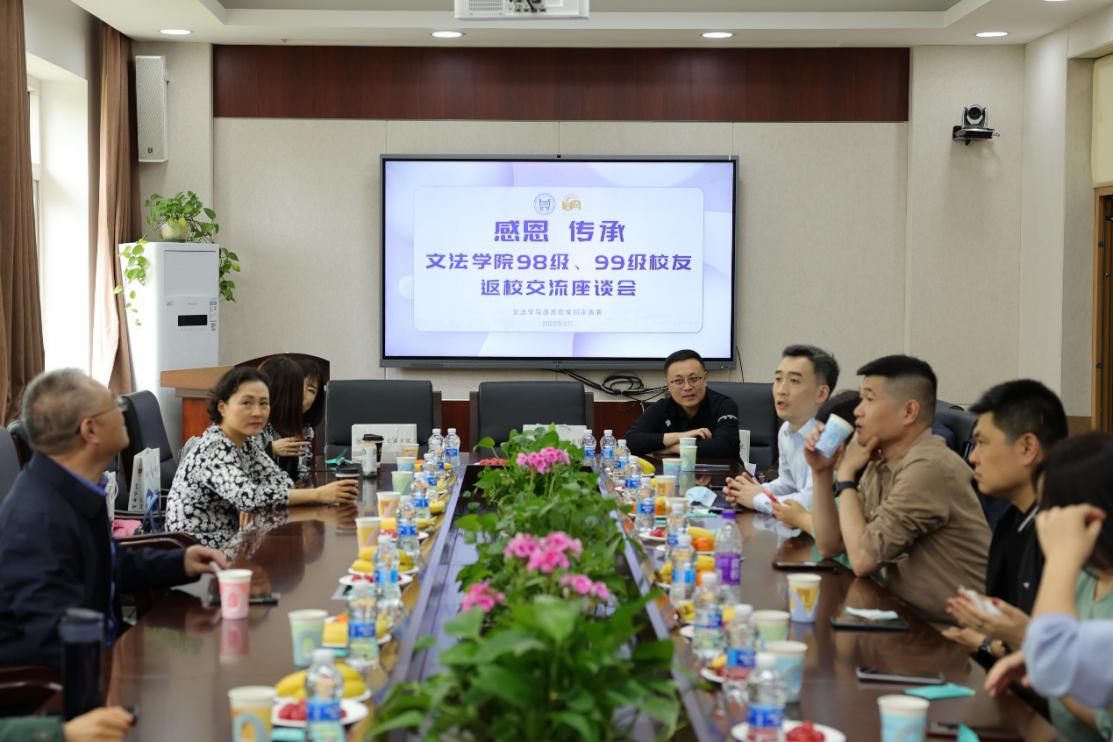 当天下午,“感恩•传承”98级、99级校友返校交流座谈会在文法楼210、208顺利举行。学院党委书记史立伟、常务副院长魏增产、副院长李虹及学院董梅、李婉平、石雁、崔俊贵等老师出席座谈会。